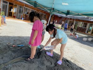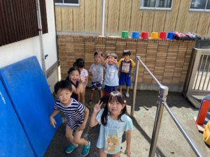 水遊び最終日、このところすっきりしない天気が続きましたが今日はおひさまも顔を出し、子どもたちも大喜び😊