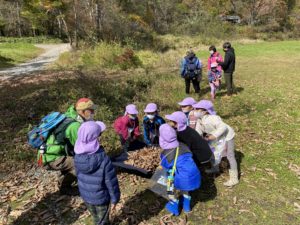 足下をよく見ると、色々な種類のきのこを発見👀実際に触って感触を楽しむ子どもたち🍄