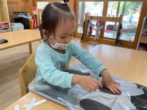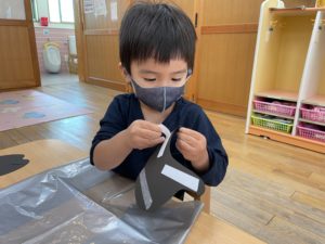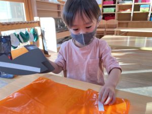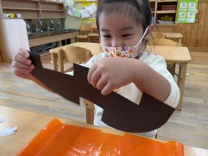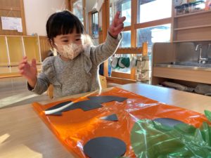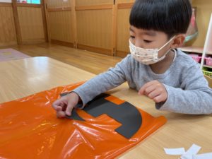 先日のハロウィンに向けて、2歳児クラスのお友達も仮装の製作をしていました🎃👻