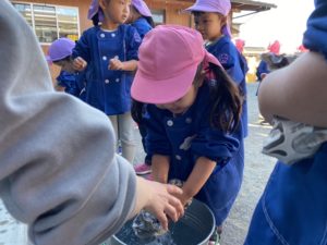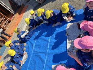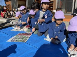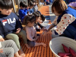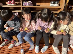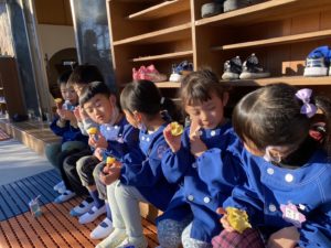 その後は先生のお話を聞いて焼き芋を新聞紙に巻きました✨