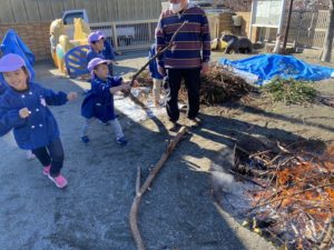 園長先生が火をつけてくれた後、みんなで焚き火もしました✨😊今日は寒かったので焚き火日和でした😌!