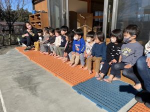 まず初めに今日のやきいも大会について園長先生のお話を聞きます✨
