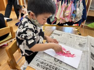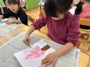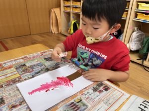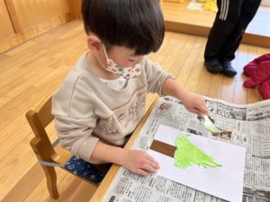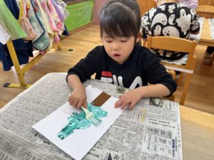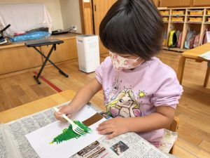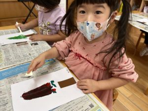 ツリーの木を自分の好きな色絵の具で混ぜて作ります♫