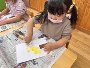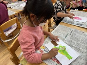 子どもたちは「あおー!」「みどりー!」と2つの色を決めて混ぜ合わせます✨