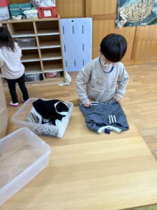 服を上手に畳んだり