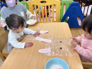 「どこに貼る?」「この向きで合ってるかなぁ」と考えながら真剣な表情👀✨