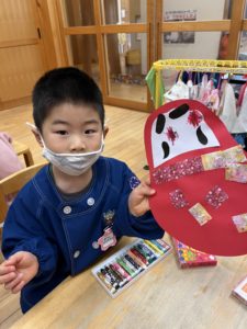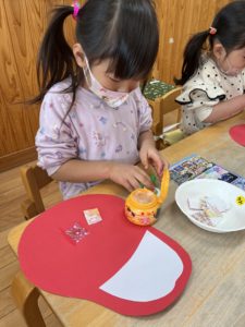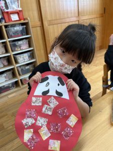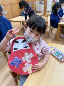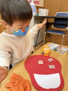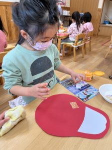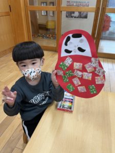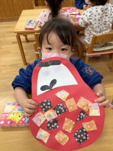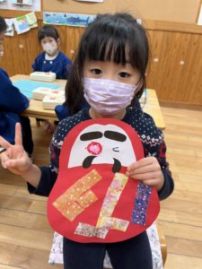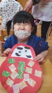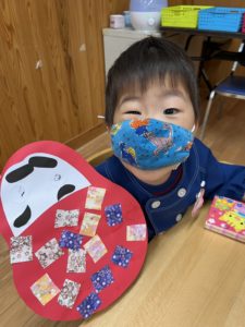 今回の製作はお正月にちなんだ『ダルマ』をみんなと作りました♪