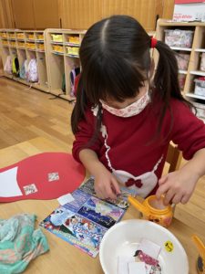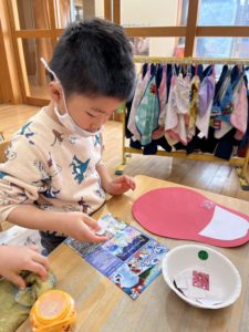 のりをそーっと丁寧につける子も💓