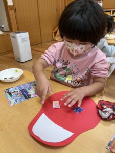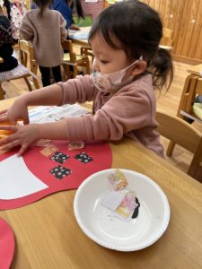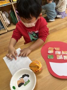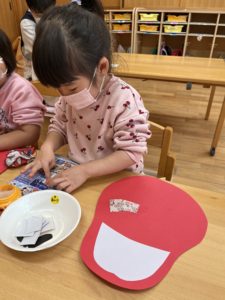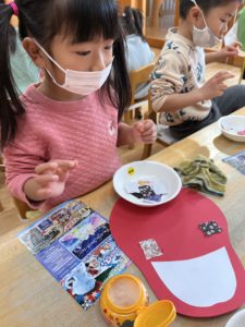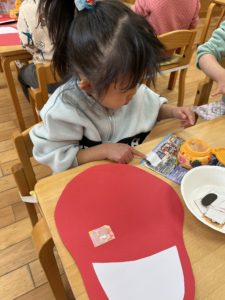 端っこから順番に貼っていく子もいろいろなダルマができました💮