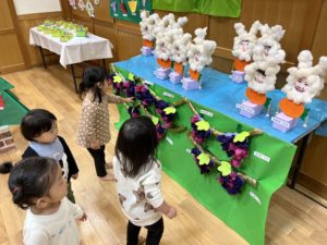 自分達が作ったものを探し、「これ〇〇ちゃんのー!」と嬉しそうに教えてくれました😊🎶