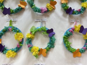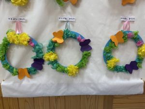 蝶やたんぽぽ、お花など春にちなんだ物を製作の中に取り入れ、可愛いリースができました✨
