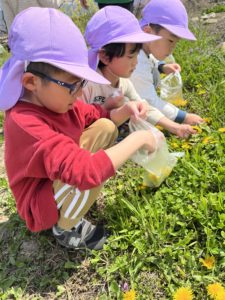 みんなで並んでたんぽぽ摘み💓