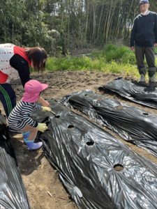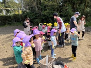 みんなでひとつずつジャガイモをもらいいざ種植えです!!