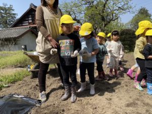 まず初めに園長先生からジャガイモの種を見せてもらい、どうやって出来るのか教えてもらいました😌