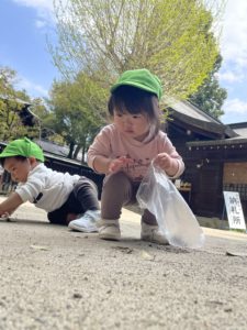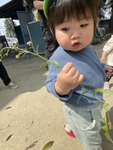 まだ歩けないお友だちも、先生に抱っこしてもらったり、近くの葉っぱを拾ったりして、自然に触れてきました🍀
