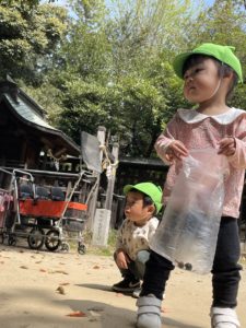 今年度はじめてのお散歩、保育園のお庭には無いものがいっぱいあって、可愛い表情をたくさん見せてくれた子どもたちでした🐰