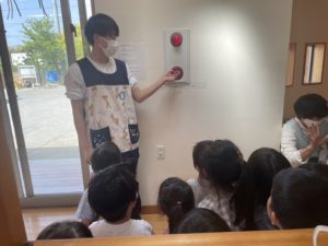 最後に火災の際に鳴らす「火災ベル」の音を覚えるために、廊下に集まりベルの音を聞きに行きました。