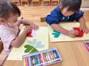 クローバーの貼り方、てんとう虫の模様など、一人一人違った素敵な作品が仕上がりました🎵