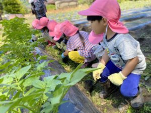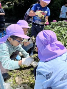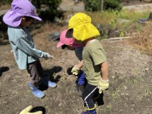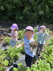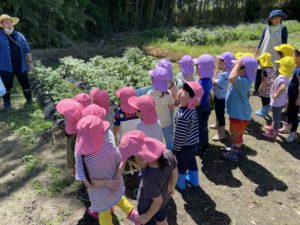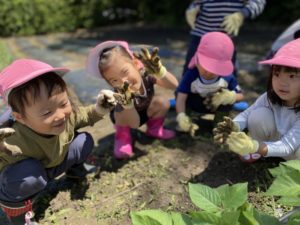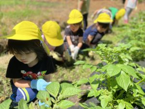 先日、ことり、ほし、もも組でじゃがいも畑の草取りをしました😊