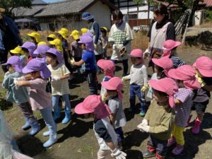 軍手を着け、やる気満々な子どもたち✨️