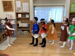 ことり組は桃太郎のお話をアレンジして『桃子と桃太郎』の劇をしました!