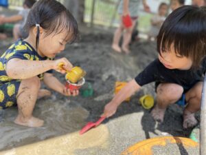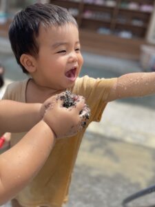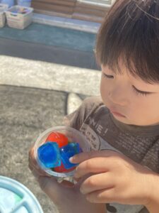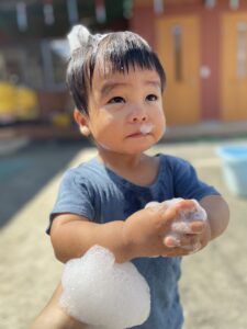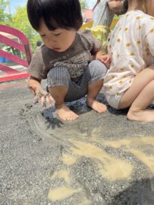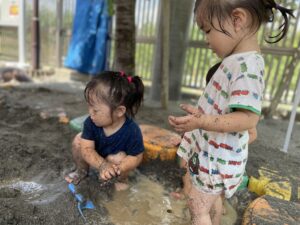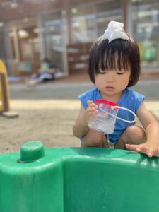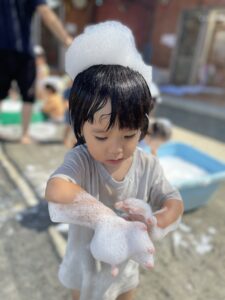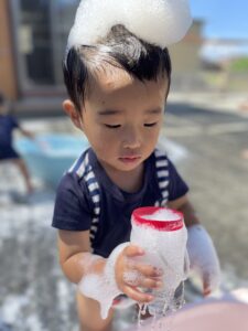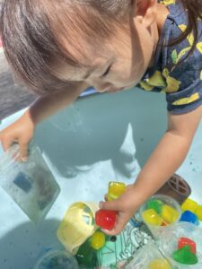 水遊びと言っても、泥んこ遊びをしたり、泡遊びをしたり、氷で遊んでみたりと内容は様々♡