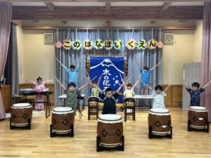 毎年夜店ごっこで行うことり組さんの太鼓発表🪘