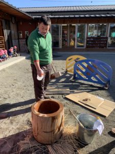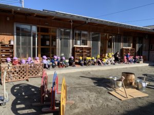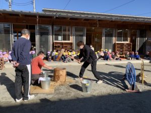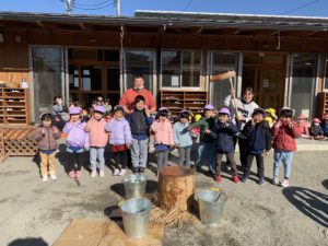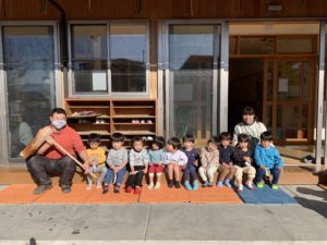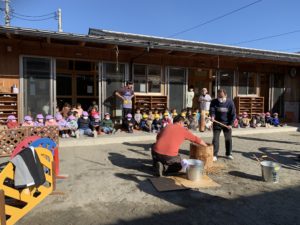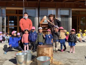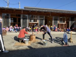 子ども達も先生達がお餅をついている姿を見て、『よいしょ〜』と掛け声をしたり、もちつきの歌を歌ったりして一緒に楽しみました✨☺️