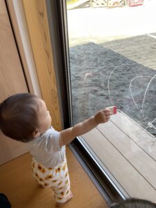 紙ではなく、窓に描けるクレヨンを使ってお絵描きしました〜😳😳💕