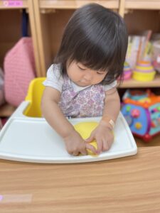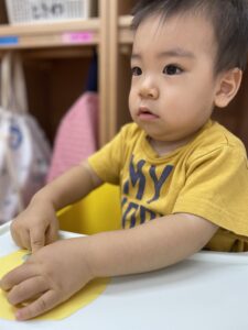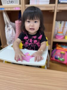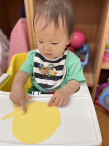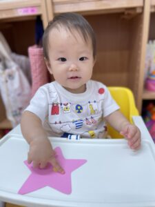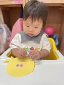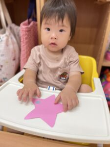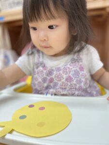 『シールぺったんする?』と子どもたちに聞くと頷いたり、『はーい🙋♀️』と手を挙げたりいい反応が沢山見られました😆