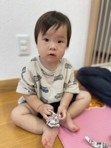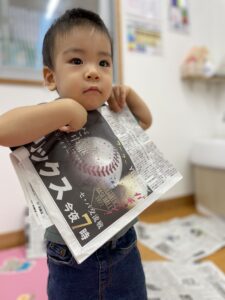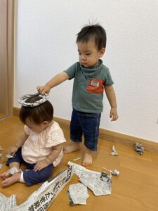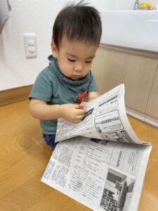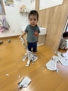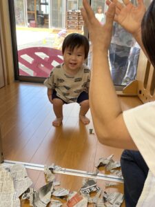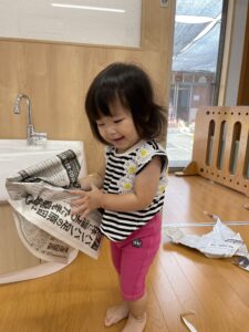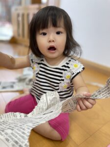 遊び方をお話しした後に新聞紙を手渡すと…色々な表情が見られました👀✨