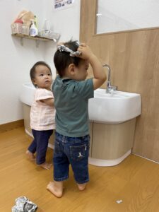 冠をお友達の頭に優しく乗せてあげたり、自分の頭に乗せたり…👀👏💕