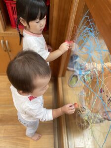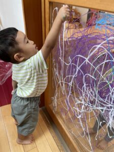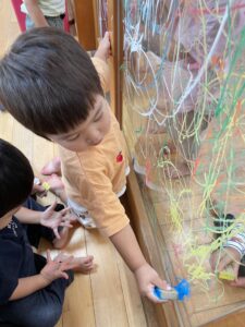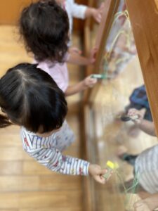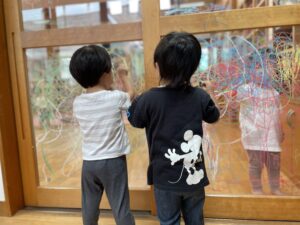 手もカラフルになってきた頃には、まどはみんなが描いた絵で埋め尽くされました🌈!!