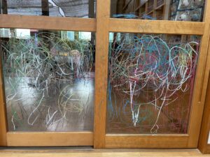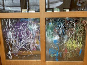 まどにお絵かきするなんて、普通なら怒られてしまうようなことですが、