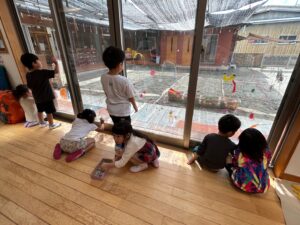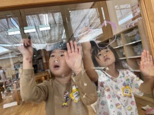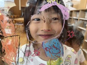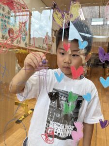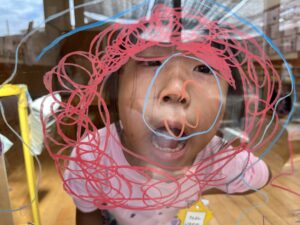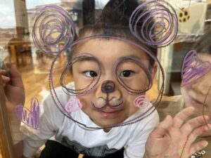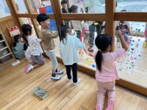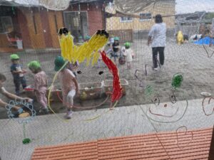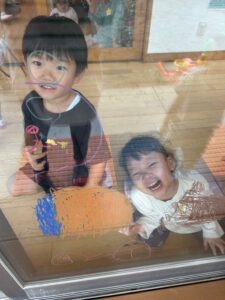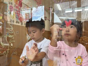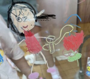 他のクラスも楽しんでいた、窓へのお絵描き🖍️