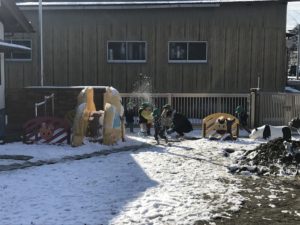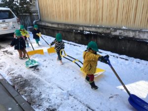 裏の庭?の新雪みんなで、上に投げたり、雪かきのお手伝いも😆