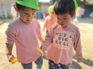 ドングリを拾ったり、追いかけっこをしたり沢山遊びました。