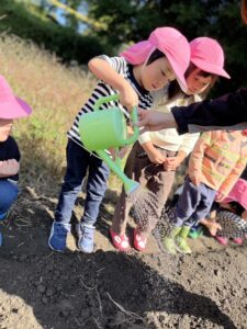 「大きくなあれ♪大きくなあれ♪」とおまじないをかけながらたっぷりお水をかけてあげました!!