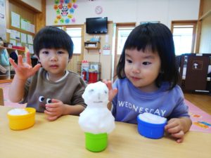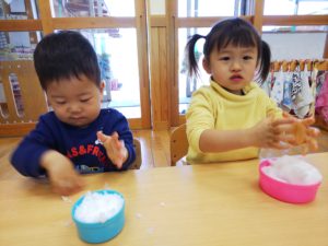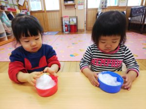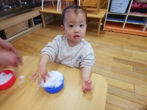 お部屋での雪遊びでしたが