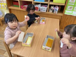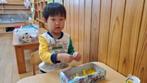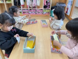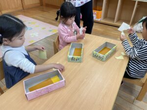 折り紙に少し切り込みを入れたので、上手に破くことが出来ていました!👍