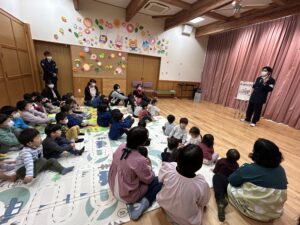 12/14 今日は県警のおまわりさん👮が保育園にきてくれ、交通安全教室がありました👮🚓