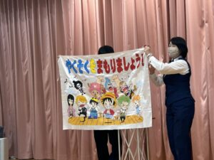 けんちゃんと一緒に、シートベルトをきちんとすることをお勉強しました🎵面白いけんちゃんに、みんなニコニコ😀楽しくお勉強ができました!