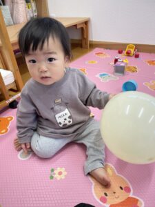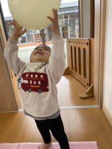 風船は大事に持ったり、『ぽーん!』と言いながら飛ばしたりと遊び方も様々です😊🎶