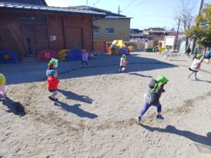 園庭をたくさん走って
