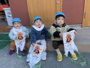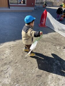 よーいドン!の声掛けで嬉しそうに自分の凧を持ちながら伸び伸び走ったり、トコトコ先生のところに来てくれたりしました✨