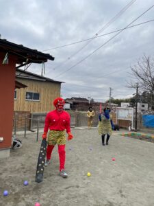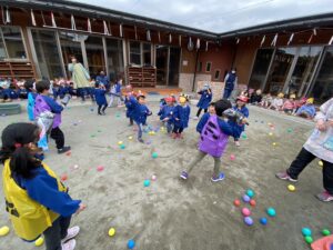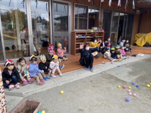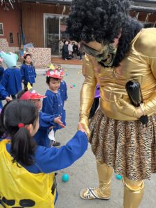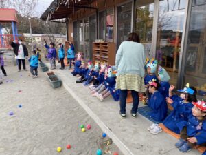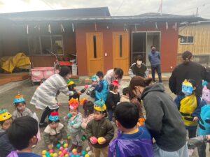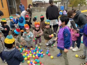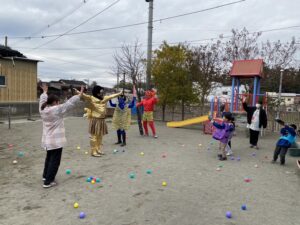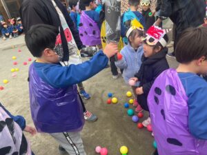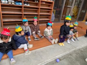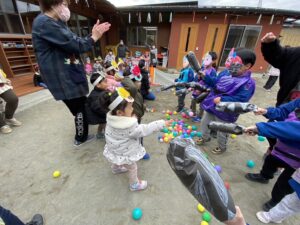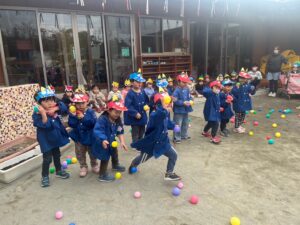 保育園では、豆の代わりにカラーボールで退治しました✊