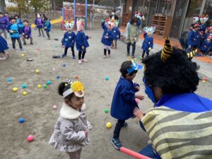 怖くて泣いてしまう子もいましたが、ボールで鬼退治を頑張りました!!!🥲