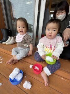 雪を見ると怖かったのか、びっくりしたのか泣いてしまうお友達も…🥲💦