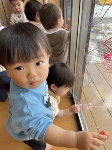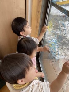 自分で好きな色を選んで窓いっぱいにお絵描きしました!!🖍️