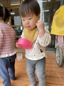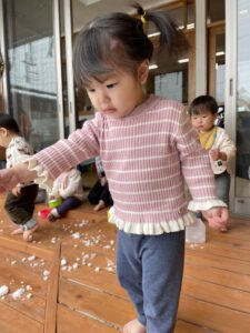 その後は、雪を手に持ち『えいっ!』『ポーン!』と上手に投げていました☃️